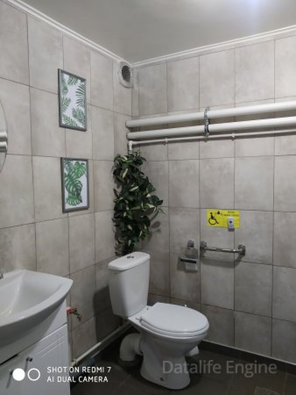 - санитарно-гигиеническое помещение находится в подвальном помещении. Помещение оборудовано кнопкой «Вызов помощи» и поручнями.
