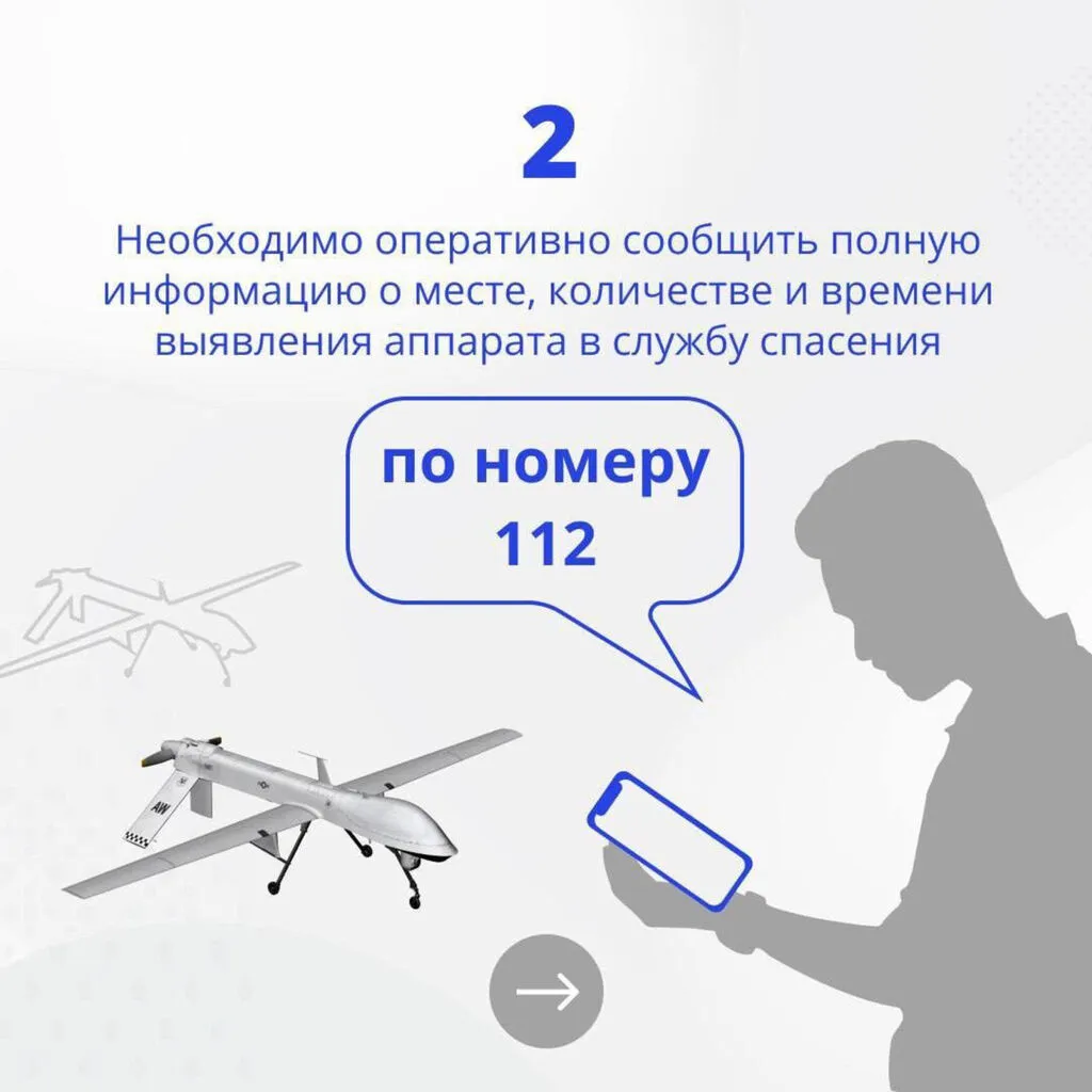 В безопасном месте необходимо позвонить в единую дежурно-диспетчерскую службу и сообщить о местоположении, количестве беспилотников и времени их обнаружения.