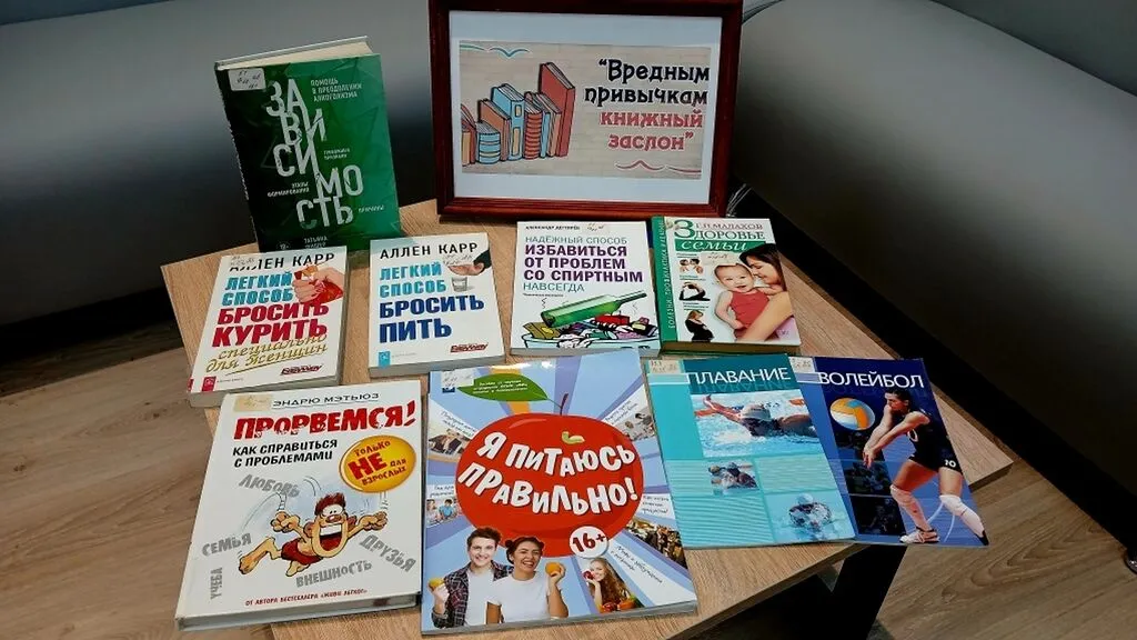 В Центральной библиотеке проходит тематическая выставка-беседа «Вредным привычкам — книжный заслон», направленная на профилактику вредных привычек среди молодёжи.