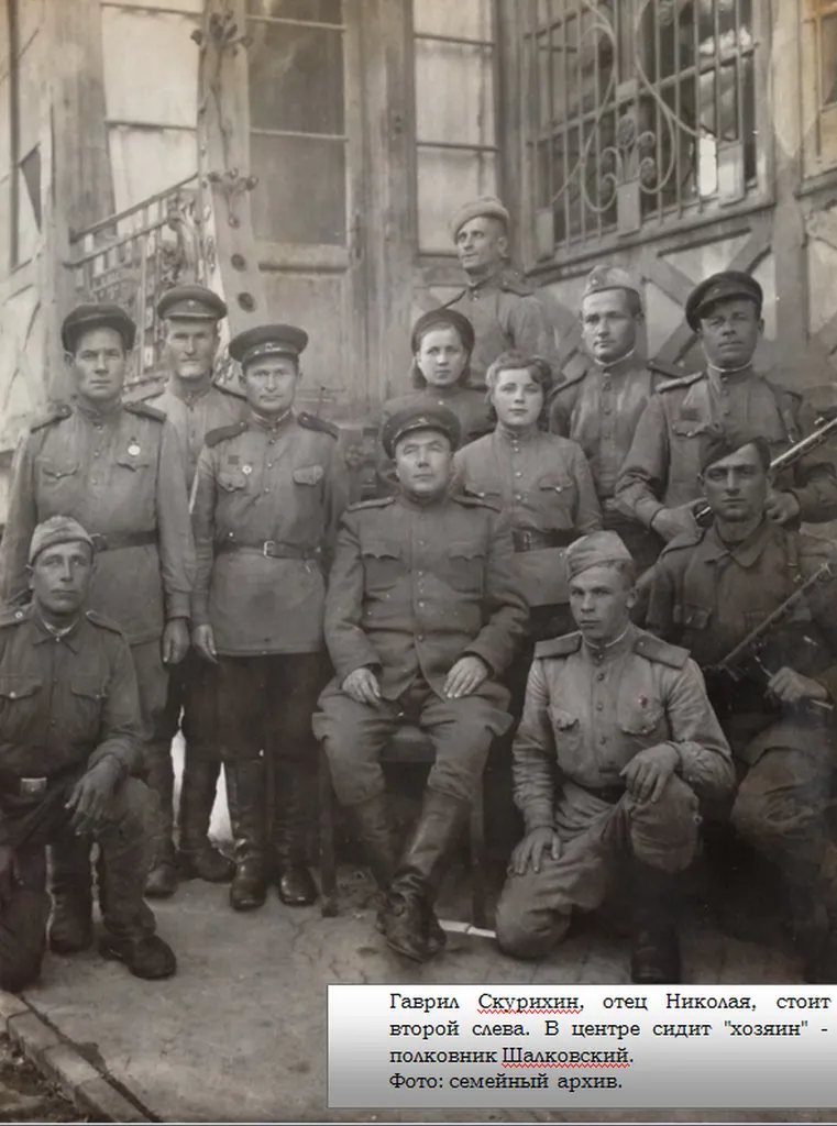 Яна Скурихина - правнучка Николая Гавриловича Скурихина делится письмами младшего лейтенанта Красной армии Николая Гавриловича Скурихина, который захоронен в Братской могиле советских воинов, погибших при штурме города Гумбиннена в январе 1945 года на улице Ю.Смирнова в городе Гусеве. Н.Г.Скурихин родился в деревне Вятско-Никольское Шарьинского района Костромской области и воевал в Восточной Пруссии. 18-летний Николай был призван в армию в январе 1943 года и ушел на фронт в звании младшего лейтенанта. Подготовку он проходил в городе Можга (Удмуртия), а воевал в составе 152 стрелковой дивизии: был командиром взвода 7-й стрелковой роты 646-го стрелкового полка.