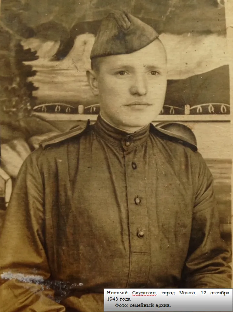 Письмо заканчивалось, как обычно: приветами тем, кто писал Николаю письма и жалобой на то, что отец не ответил на прошлое письмо. В тот же день, 20 января, подразделение младшего лейтенанта Скурихина после отдыха и перегруппировки выступило в направлении Гросс Тракенена (Ясная Поляна). В районе поселка Кампишкемен (Синявино) 21-го января полк понес первые потери – один человек был убит, а утром 22 января, согласно журналу боевых действий полка, усиленный взвод противника при поддержке артиллерии и минометов занял три домика в Кампишкемене. Когда к 8:20 гитлеровцев выбили из поселка, противник бросил в очередную контратаку уже роту солдат со стороны поселка Юнгорт, прикрывая ее интенсивным огнем артиллерии. Контратака была успешно отбита, однако полк по первым подсчетам потерял убитыми 31 человека и ранеными 115 человек. К концу дня командование подвело итоги, согласно которым данные были скорректированы: ранено 11 офицеров, 28 сержантов и 96 рядовых; а в списках убитых один офицер, 11 сержантов и 16 рядовых. Судя по всему, именно в этом бою Николай Скурихин получил тяжелое ранение, после которого скончался в госпитале 26 января 1945 года.