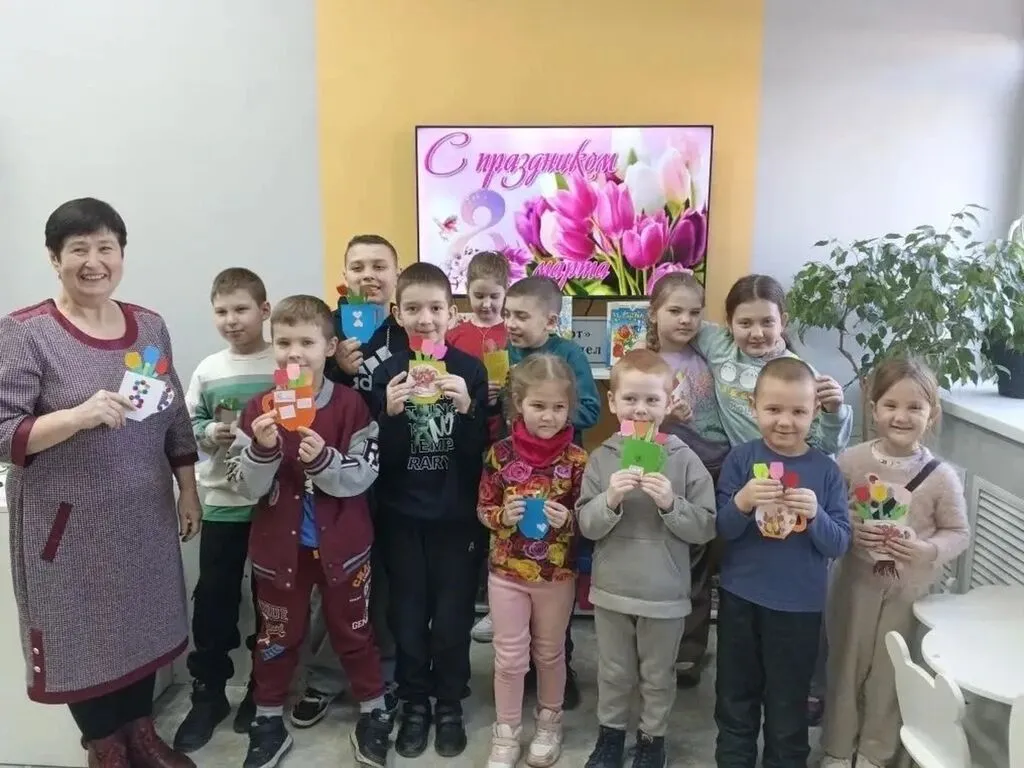 Каждый ребёнок смог создать свою уникальную открытку с цветами и тёплыми поздравлениями для любимых мам, бабушек и сестричек.
