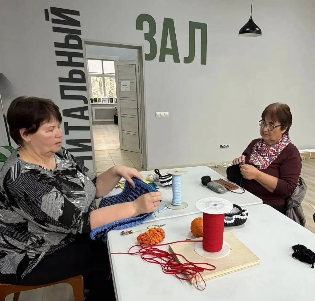 Занятие участниц творческой мастерской «Вяжем настроение» в Центральной библиотеке!