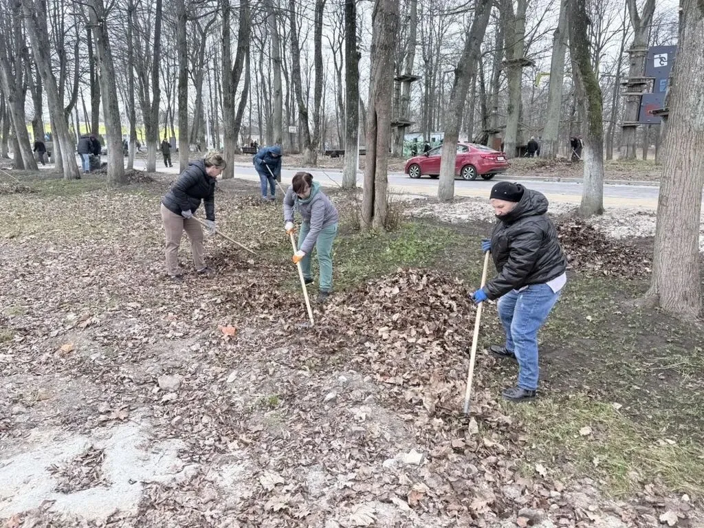 Вместе с представителями других организаций убирали листву, придавали парку ухоженный вид.