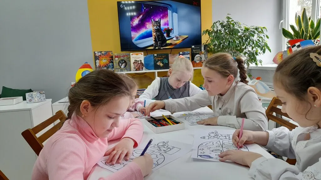 Ведущий библиотекарь Людмила Экс поделилась с ребятами увлекательными историями о первых космонавтах: кто стал первым, поднявшимся в космос, и кто — тем, кто вышел в открытый космос. Ребята с любопытством слушали факты о космических миссиях и достижениях науки!